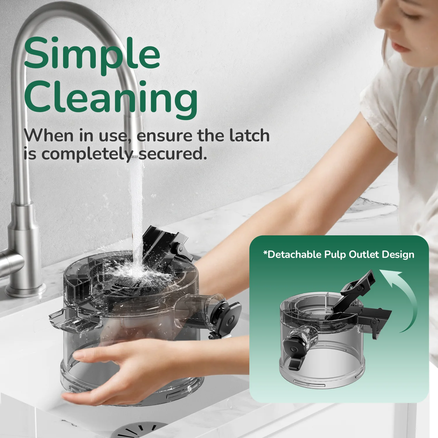 - Simple Cleaning: Cleanup is made easy with an easy-open latch and a detachable pulp outlet, complemented by BPA-free plastic housing for safety.